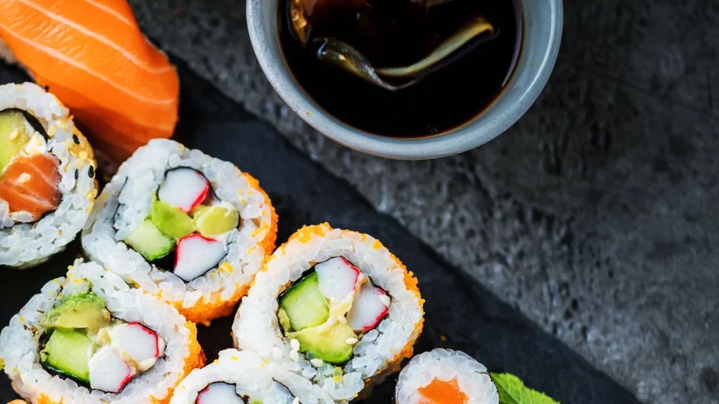 SOJASAUCE ist beim Sushi ein klassisches Würzmittel – sie bringt Salz, Umami und Tiefe ins Spiel, ohne den Eigengeschmack des Fischs zu überdecken. Sojasauce ist eine fermentierte Sauce aus Sojabohnen, Weizen, Wasser und Salz.